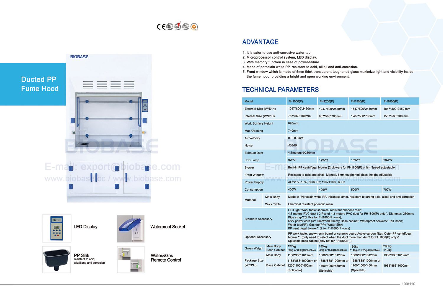 Cửa trước: Chống axit và kiềm, điều khiển thủ công, làm bằng kính cường lực dày 5 mm, có thể điều chỉnh độ cao