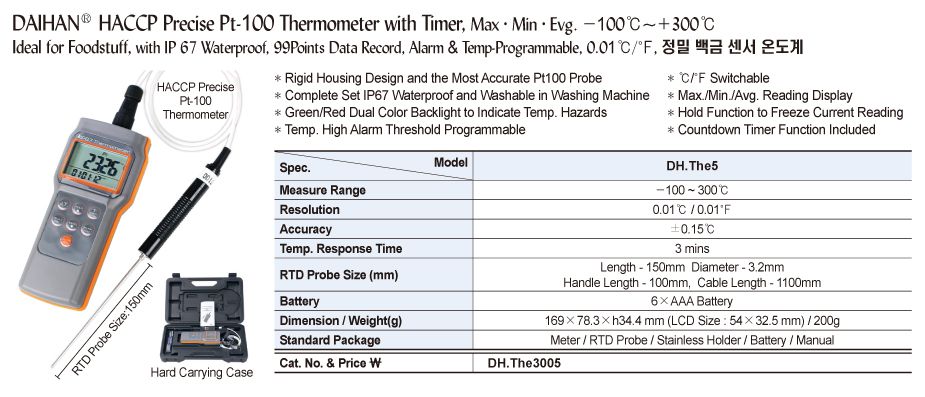 DaiHan THE5 HACCP Precise Pt-100 Thermometer with Timer | EMIN.VN