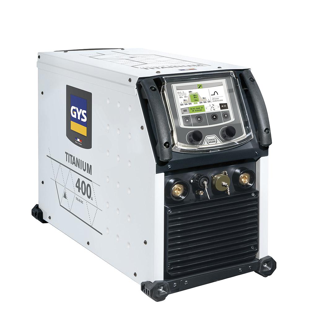 The TITANIUM 400 AC/DC is a high-performance TIG AC/DC generator (400 A to 60%) designed to offer a wide choice of welding processes (TIG AC, DC, MMA). It can be used to weld all types of materials; mild steel, stainless steel, aluminium, copper, titanium. Also ideal for welding thin gauge, its Pulse mode reduces heat input and provides better arc control. Intuitive and highly functional, its digital interface allows you to change welding parameters with ease.