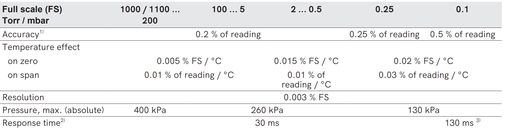 Control pressure: 0.5 % FS