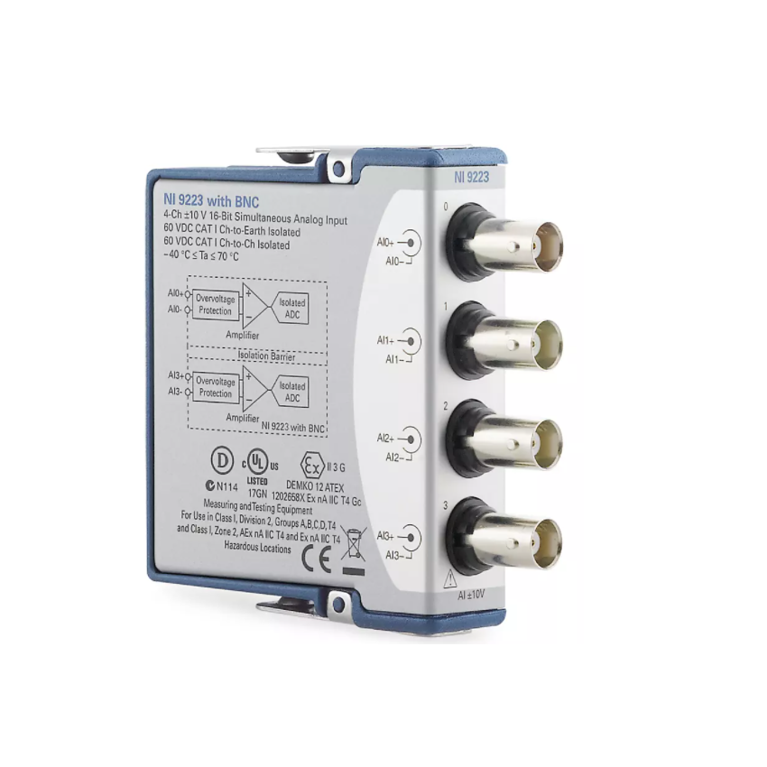 The C Series Voltage Input Module helps you work with voltage measurement applications. This module features isolation to separate channels from each other, from COM, or from earth ground for safety, noise immunity, and high common-mode voltage range. The module features up to 100 V of overvoltage protection for errant signal connection or unexpected outputs to the individual channels. You can use included options such as configurable input ranges, output channels, various connectors, and enclosed or non-enclosed modules.The C Series Voltage Input Module includes the NI-DAQmx driver and configuration utility that simplify configuration and measurements. NI-DAQmx supports NI programming environments as well as Python, ANSI C, C#.NET, and MathWorks MATLAB® software.