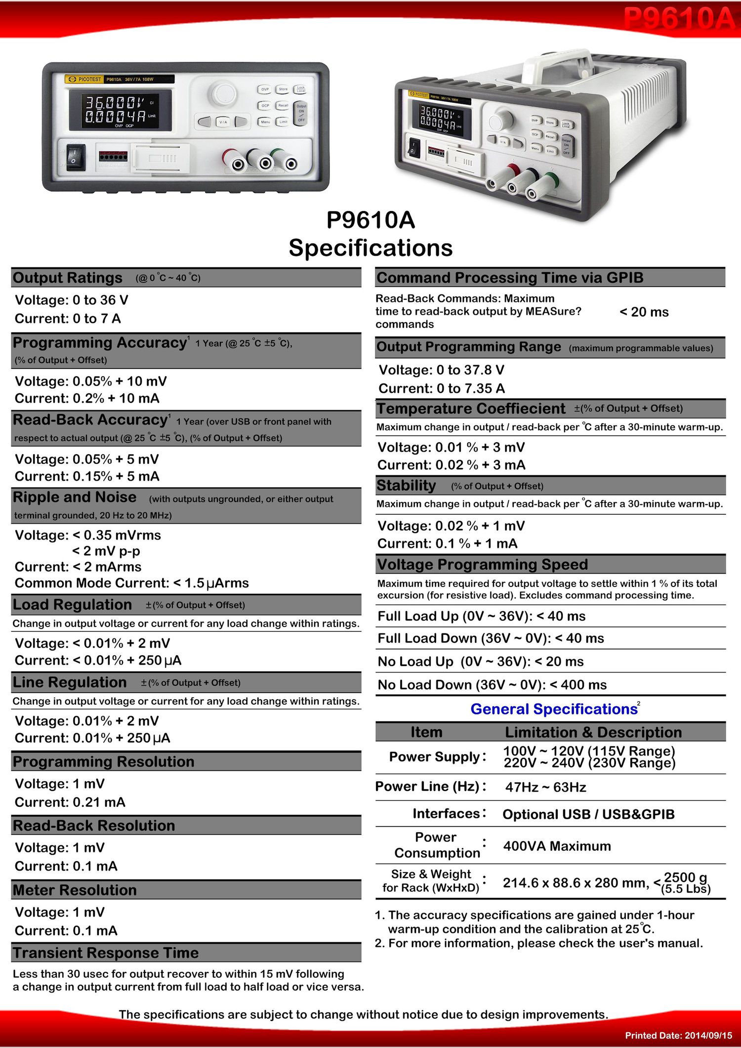 Power Supply: 100V-120V (115V Range), 220V-240V (230V Range)