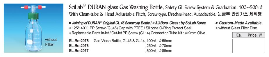 SciLab SL.Bot2076 DURAN glass Gas Washing Bottle (250ml) | EMIN.VN