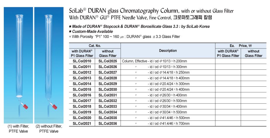 SciLab SL.Col2012 DURAN glass Chromatography Column (PTFE valve, P1-filter, Φ18xh250mm) | EMIN.VN