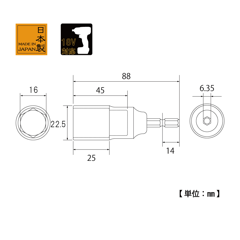 TOP Kogyo EDS-16C Compact Socket Bit (16mm) | EMIN.VN