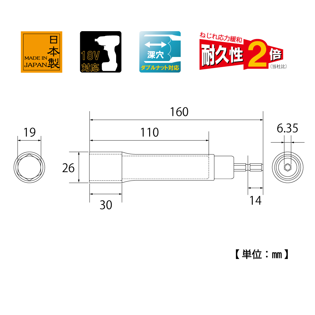 TOP Kogyo EDX-19L Alpha Socket Long Type (19mm) | EMIN.VN