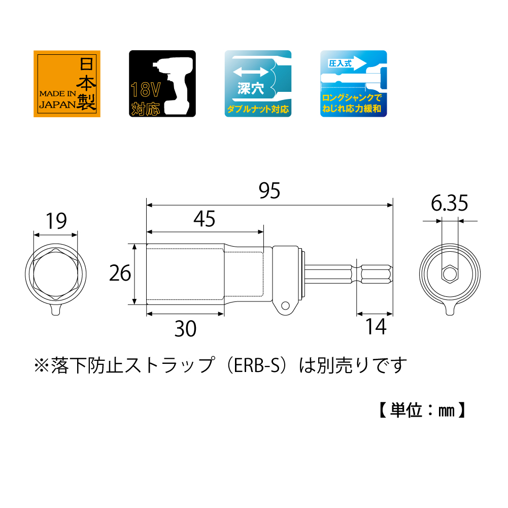 TOP Kogyo ERB-19 Hicatch Fall Prevention Socket (19mm) | EMIN.VN