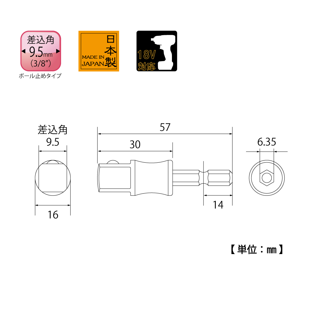 TOP Kogyo ESA-3D Socket Bit Adapter (57mm) | EMIN.VN