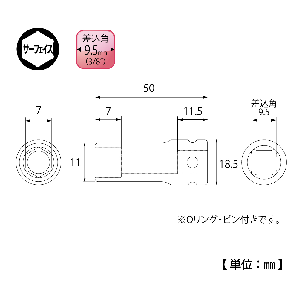TOP Kogyo PT-307L Impact Deep Socket (3/8'', 7mm) | EMIN.VN