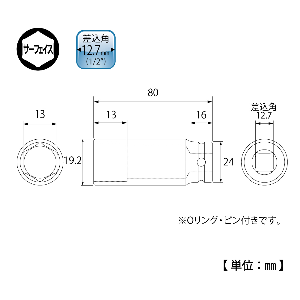 TOP Kogyo PT-413SL Super Long Impact Socket (1/2'', 13mm) | EMIN.VN