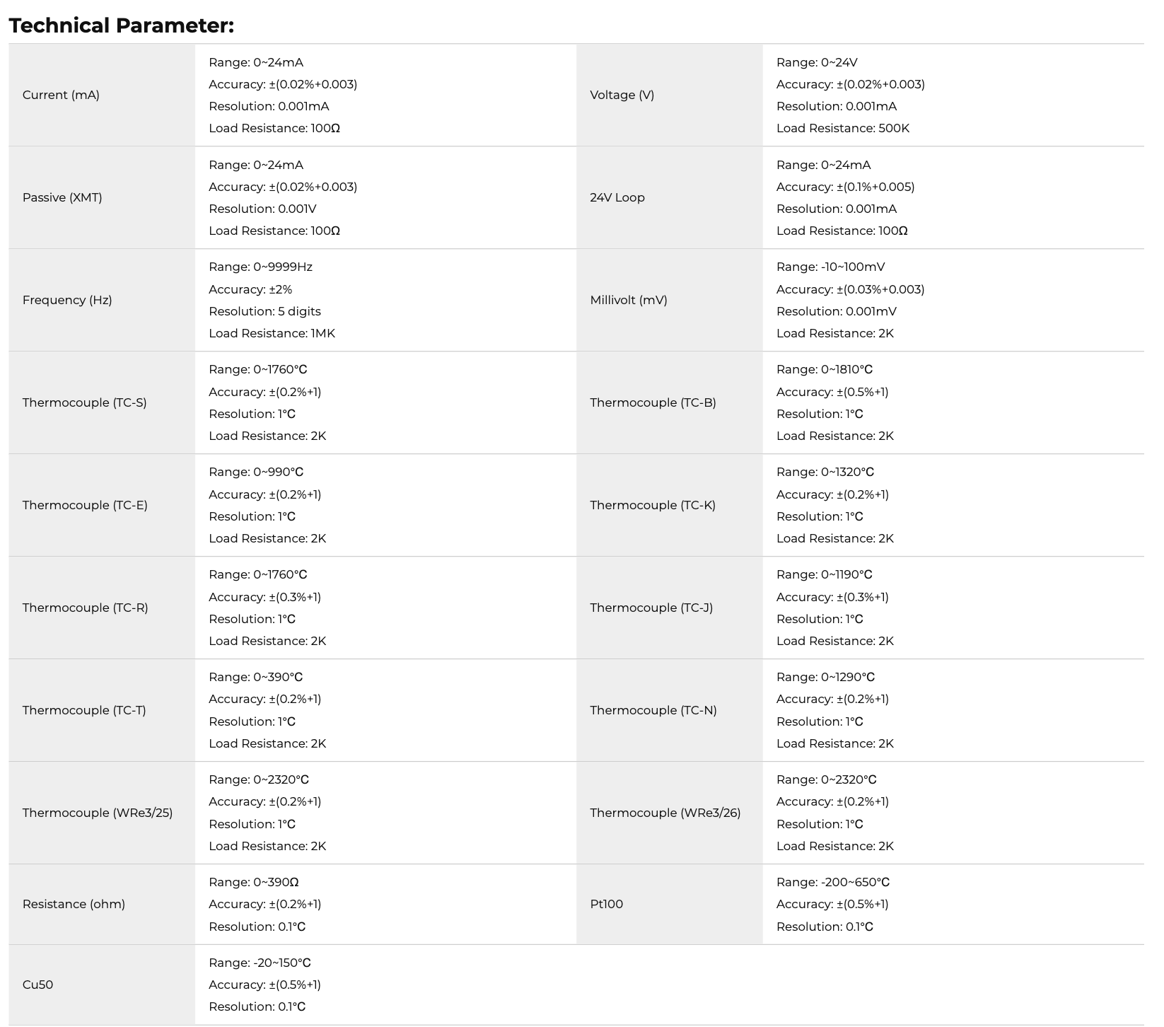 Cặp nhiệt điện: -10~100mV