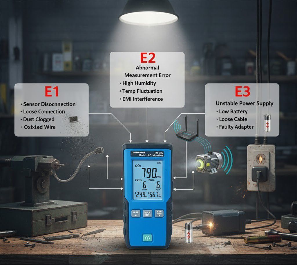Error E1, E2, E3 when using air quality meter and how to fix it | EMIN.VN