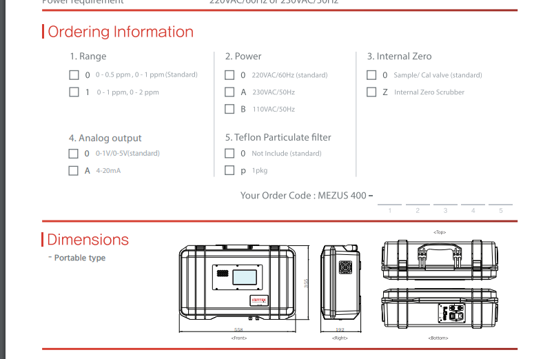 Ranges: 0 - 0.1 / 0 - 0.5 / 0 - 1ppm (selectable)