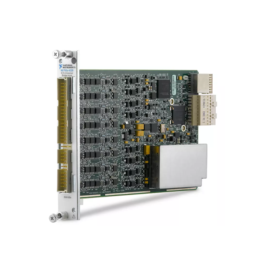 The PXI Strain/Bridge Input Module features up to eight channels that support quarter-, half-, or full-bridge sensors at speeds up to 102.4 kS/s. This module provide increased accuracy, high data throughput, and a range of synchronization features. The module is ideal for dynamic strain, load and pressure measurements, and test cell installations requiring accuracy and flexibility. Some models include optional features such as remote sensing, internal bridge completion, and shunt calibration options per channel.The PXI Strain/Bridge Input Module includes the NI-DAQmx driver and configuration utility that simplify configuration and measurements. NI-DAQmx supports NI programming environments as well as Python, ANSI C, C#.NET, and MathWorks MATLAB® software.