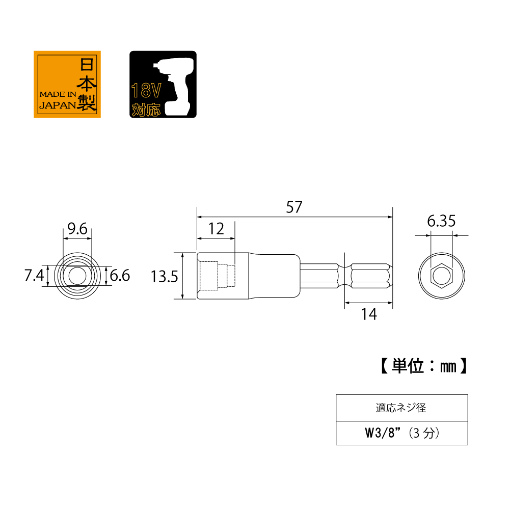 -Đường kính ngoài: 13.5mm