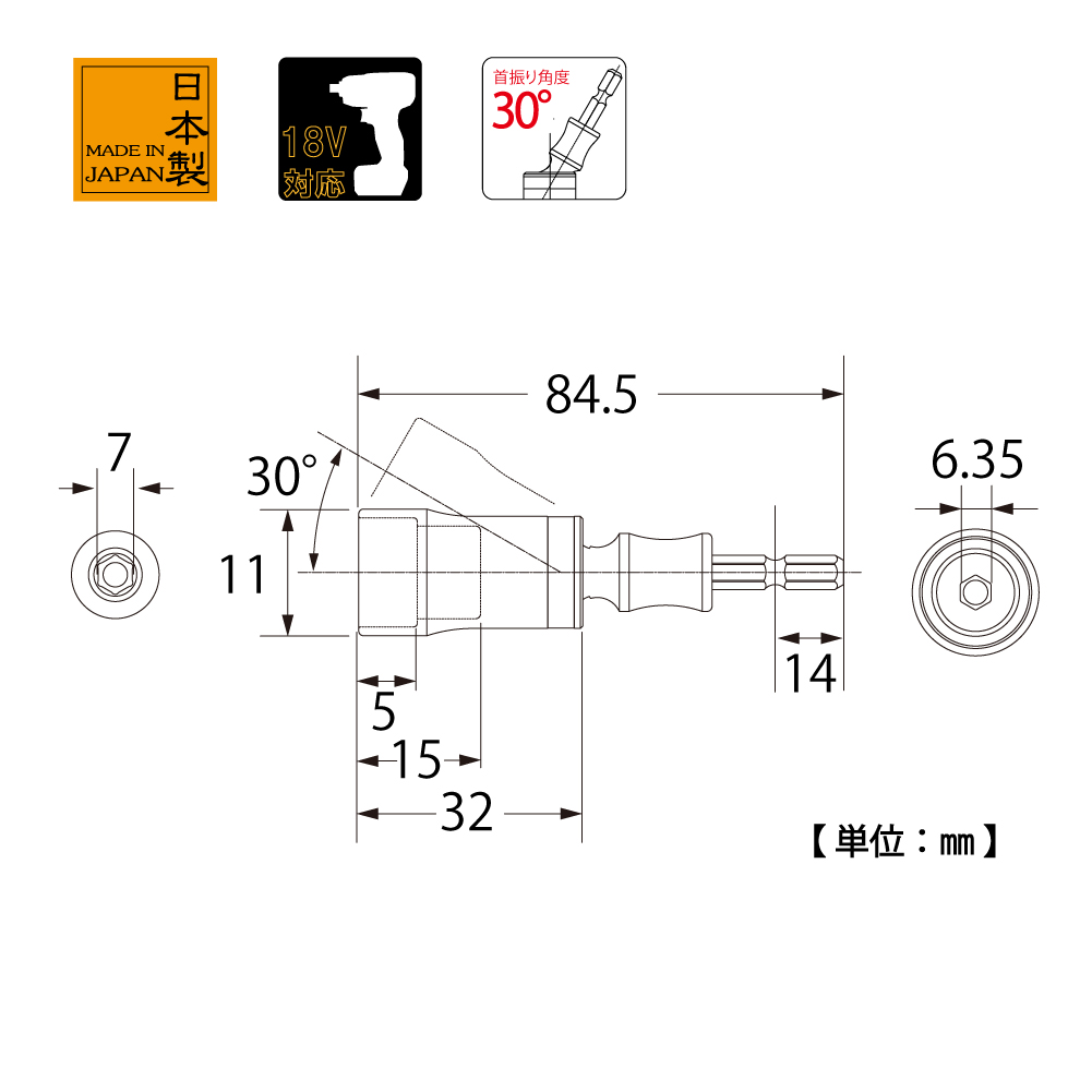 -Size: 7mm - Góc xoay: 30°