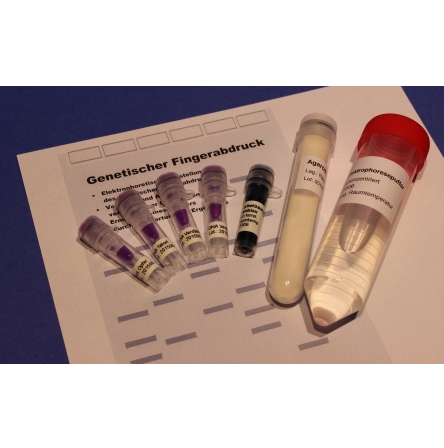 This set allows to simulate the method of DNA-Fingerprinting and uses a DNA fingerprint to identify the offender in a hypothetical crime. After separation of given DNA (set includes DNA samples of suspects and offender, no real human DNA) by using gel electrophoresis and staining the DNA samples the students can compare the pattern of fragments on the gel with other DNA samples and match the DNA to the offender.
