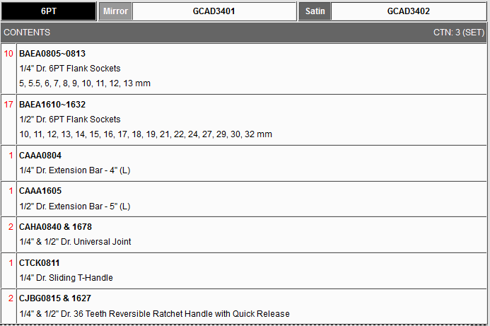 1/4" Dr. 6PT Flank Sockets BAEA 0805~0813: 5, 5.5, 6, 7, 8, 9, 10, 11, 12, 13 mm