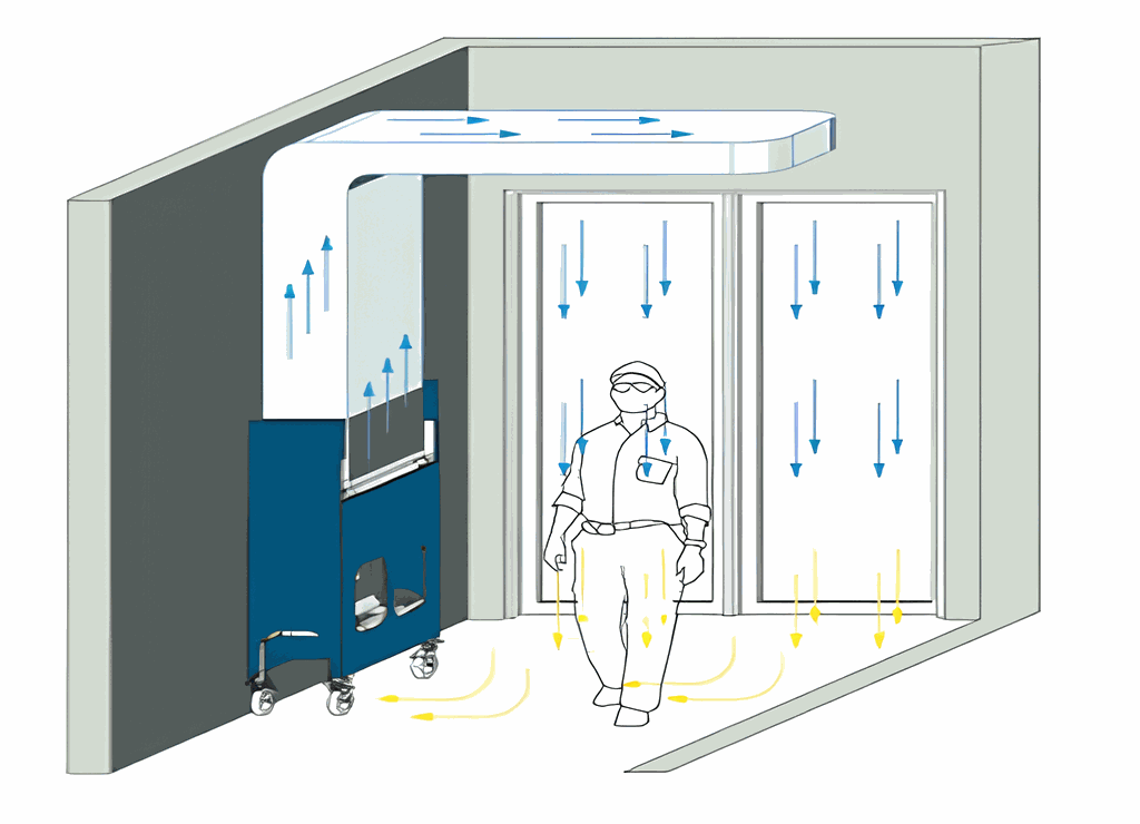 Buồng thổi khí là thiết bị trung gian được đặt tại lối ra vào phòng sạch, có nhiệm vụ loại bỏ bụi bẩn, vi sinh và tạp chất bám trên quần áo, giày dép, xe đẩy hoặc vật tư trước khi đi vào khu vực sản xuất. Nhờ luồng khí sạch tốc độ cao kết hợp bộ lọc HEPA, không khí trong buồng được làm sạch liên tục và thổi trực tiếp lên bề mặt cần làm sạch với vận tốc khoảng 20-25 m/s. Không đơn thuần là một thiết bị phụ trợ, buồng thổi khí đóng vai trò then chốt trong việc giữ ổn định cấp độ sạch, đảm bảo chất lượng sản phẩm và tối ưu hóa hiệu suất vận hành lâu dài.