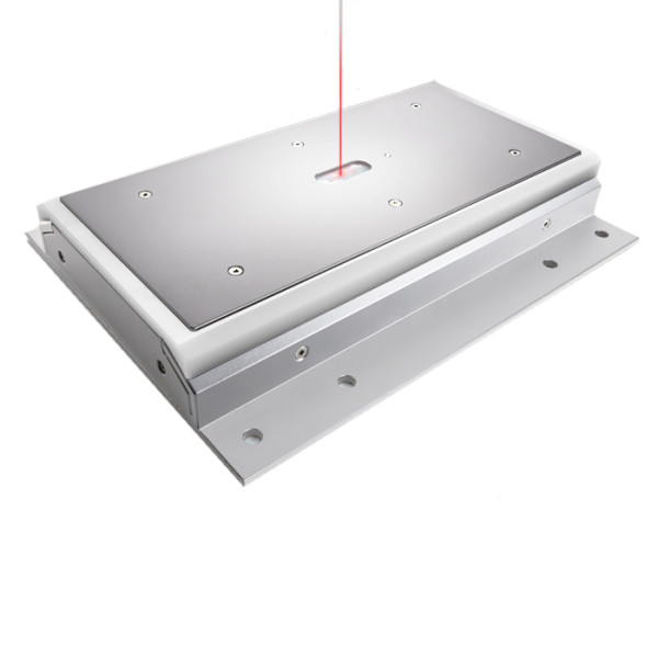 Laser distance sensors compensate for vertical board movement or warp as the board passes over the sensors