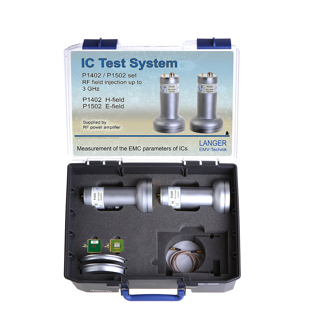 The RF magnetic field injection up to 3 GHz probe set tests the ICs in terms of their immunity under the influence of RF magnetic fields (P1402) or RF-E-field (P1502).
