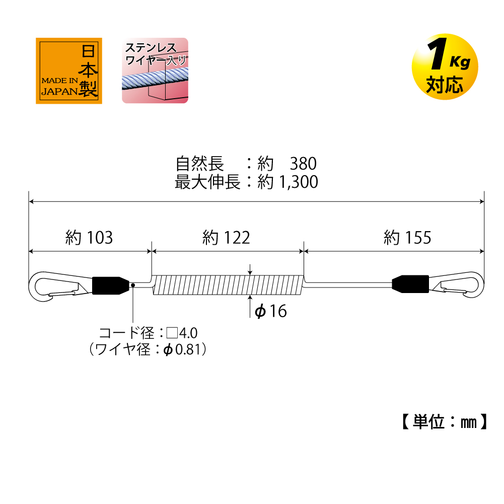 TOP Kogyo SFC-412SB Square-Type Safety Lanyard (380mm) | EMIN.VN