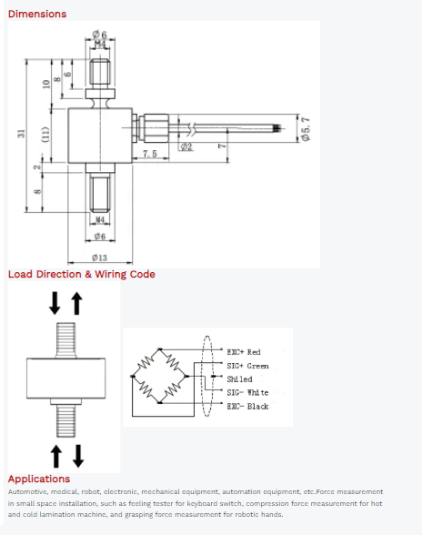 Cable Connection: Ex+: Red;Ex-: Black;Sig+: Green;Sig-: White