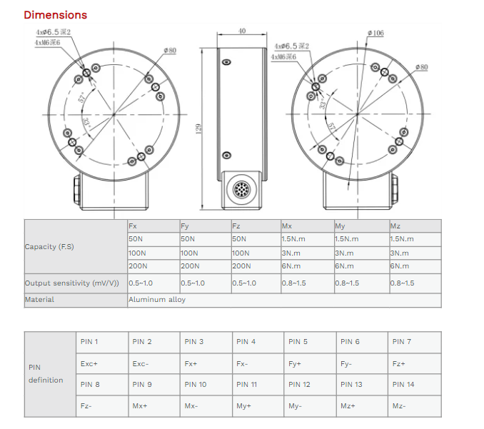 XJCSENSOR X-6A-D106-H42 6 Axis Force/torque Sensor (50N~200N) | EMIN.VN