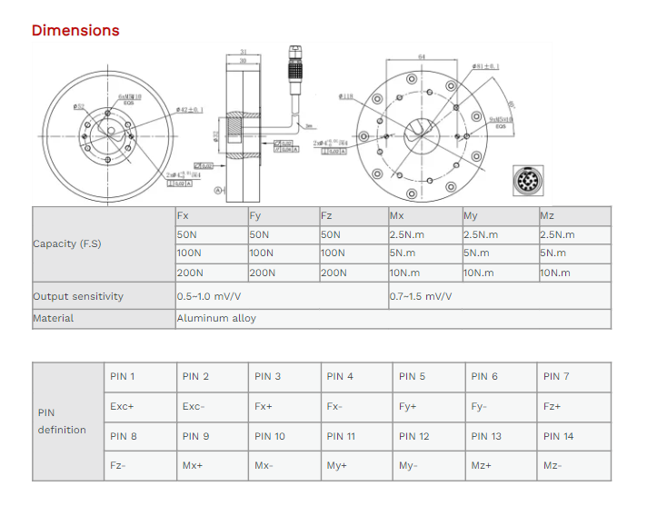XJCSENSOR X-6A-D118-H31 6 Axis Force/torque Sensor (50N~200N) | EMIN.VN