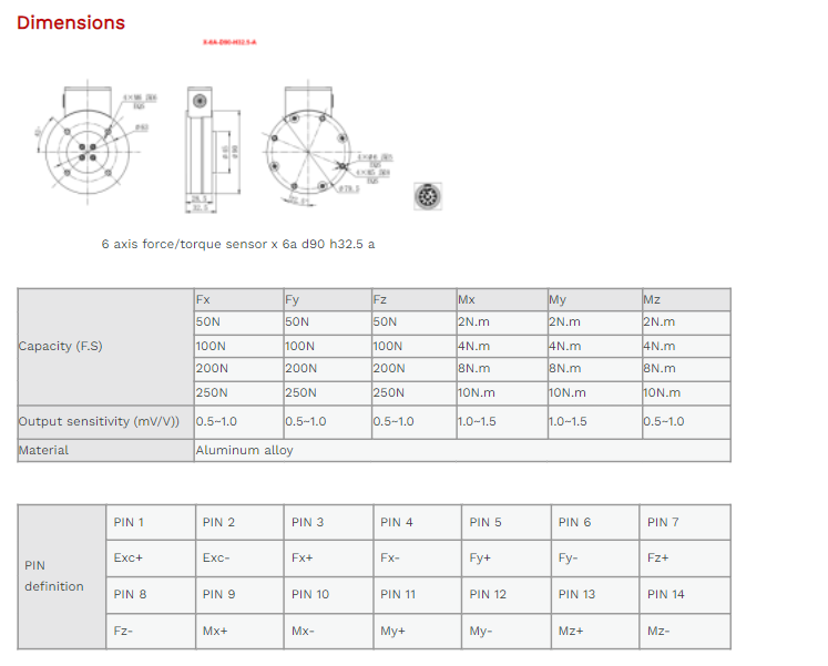 XJCSENSOR X-6A-D90-H32.5-A 6 Axis Force/torque Sensor (50N~250N) | EMIN.VN