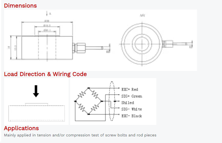 Cable Connection: Ex+: Red; Ex-: Black; Sig+: Green; Sig-: White
