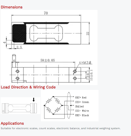Cable Connection: Ex+: Red; Ex-: Black; Sig+: Green; Sig-: White