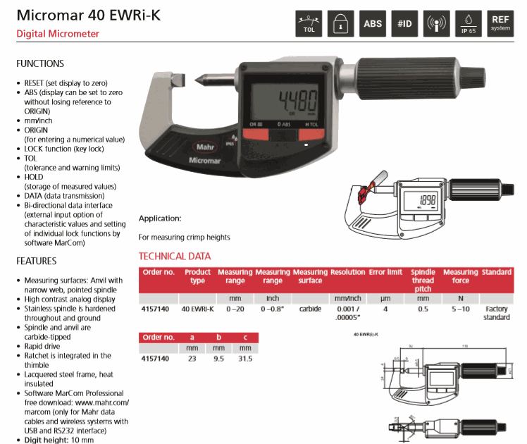 Panme đo ngoài điện tử Mahr 4157140 (40 EWRi-K, 0-20mm/0-0.8") | EMIN.VN