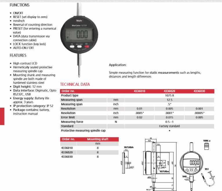 Độ phân giải: 0.005mm/.0001”