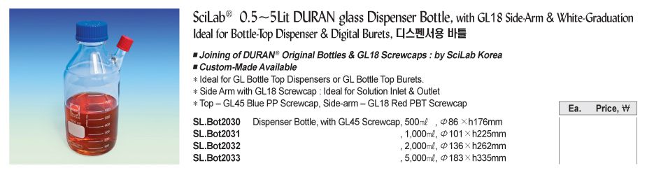 Bình thủy tinh có vòi DURAN SciLab SL.Bot2032 (2000ml; GL18 Side-Arm; GL 45 ScrewScap) | EMIN.VN