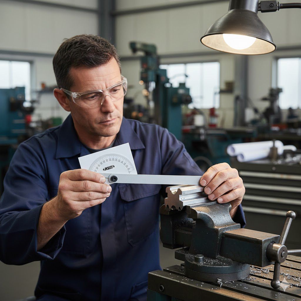 Bộ phận QC kiểm góc chi tiết CNC, xác định góc các mối hàn trong cấu trúc thép và đối chiếu với bản vẽ kỹ thuật trước khi xuất xưởng. Kỹ sư bảo trì đo độ nghiêng băng tải, đường ống, canh chỉnh khớp nối hoặc puly để duy trì vận hành ổn định và kéo dài tuổi thọ thiết bị. Thợ lắp đặt dùng thước để căn góc khi dựng khung, kệ, bảo đảm chính xác và gọn gàng.